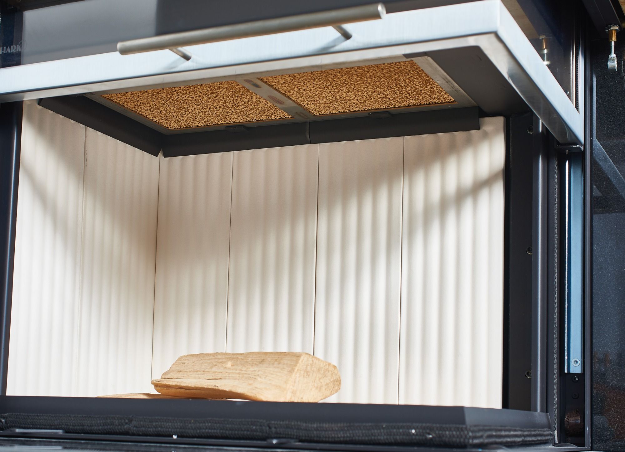 - Ausgestattet mit keramischem Feinstaubfilter, ausgeklügelter Luftführung und Feuerraumauskleidung aus Spezialkeramik.